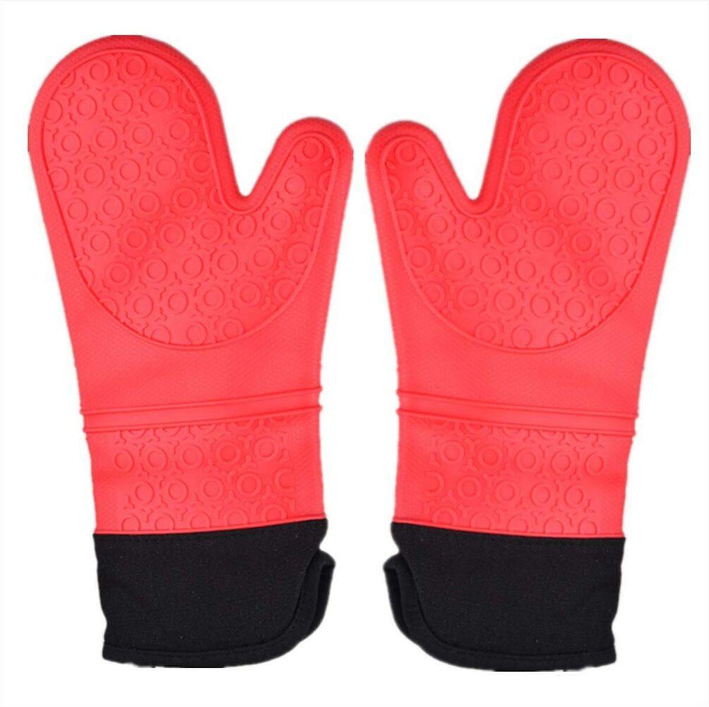 Silicone Oven Mitts and Oven Gloves, Red Oven Holder with Soft Quilted Liner, Flexible Heat Resistant Cooking Gloves, BBQ Mitts, Kitchen Finger Protector, 1 Pair, 14.7Inch